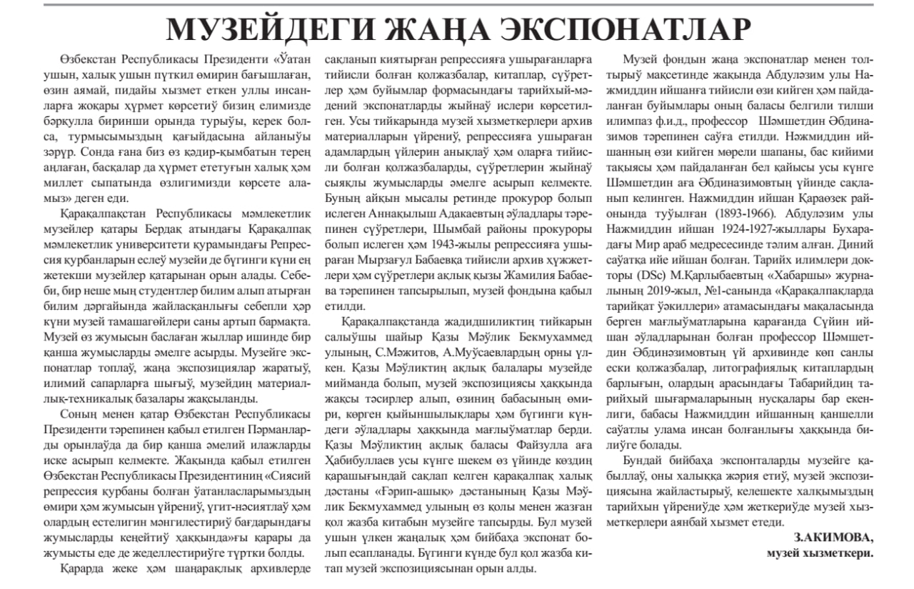 Нөкис қаласы, "Алтын әсир" көшеси 15-жай турғыны Латипов Қәдирқул ағ...